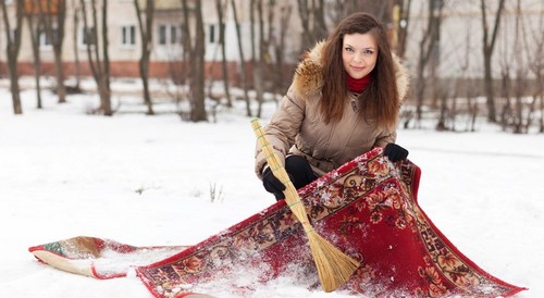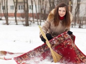 Es ist ideal, um vylapyvanie in der Wintersaison durchzuführen, wenn der Schnee liegt. Sie müssen nur den Teppich in den Schnee Haufen legen und Auspuff.