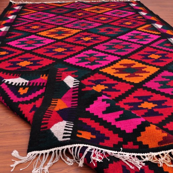Handarbeit ist der teuerste und längste Teppichherstellungsprozess. Meistens werden natürliche Materialien für diese Produktion verwendet, und das Ergebnis sind teure Luxusteppiche. Oft sind solche Modelle doppelseitig, weil die genaue Handarbeit aus hochwertigem Material es ermöglicht, eine identische vordere falsche Seite des fertigen Produkts zu erhalten.Eine beliebte Option, die in den Wohnbereich passt, ist der glatte, gewebte, handgefertigte, doppelseitige Teppich-Kelim. Meistens hat dieser Typ ethnische Farben. Es ist jedoch erwähnenswert, dass Kelims auch oft die Grundlage für handgefertigte Teppiche sind.