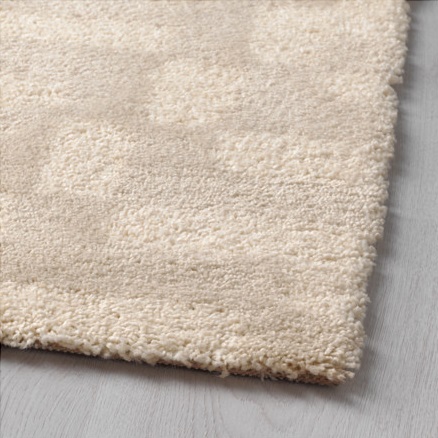 Um die hypoallergenen Eigenschaften sowie die Farbe zu erhalten, muss der Teppich einmal pro Jahr mit einer Lösung aus Ammoniak und Wasser behandelt werden. Mit einer weichen Bürste müssen Sie die Flüssigkeit im Teppich verteilen und dann den Flor mit einem weichen Tuch abwischen und den Raum belüften.