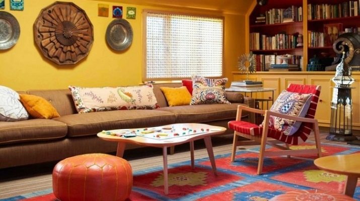 Die Wahl kann sich auch an der Farbe orientieren. Zum Beispiel ist es besser, einen mehrfarbigen hellen Teppich in monophonen Räumen zu verwenden, aber in einem hellen, bunten Innenraum ist es besser, weiche Produkte zu legen, deren monochrome Färbung den Möbeln entspricht.