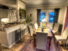 - Die Schattierungen des Bodenbelags sollten den Farbtönen anderer Elemente der Raumgestaltung entsprechen: sie können die Farbe von Vorhängen, Küchenschürzen, Polsterungen auf Stühlen usw. haben. Der Teppich sollte, wie das letzte Puzzle in einem Puzzle, alle verschiedenen Teile des Interieurs vereinen und Harmonie schaffen.