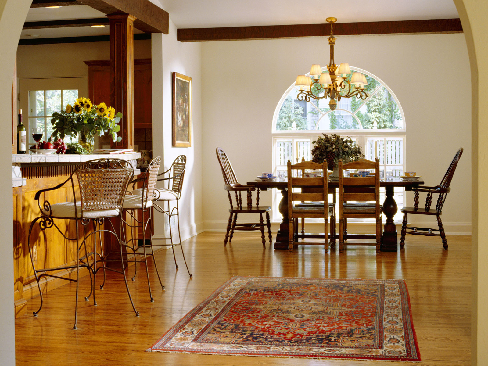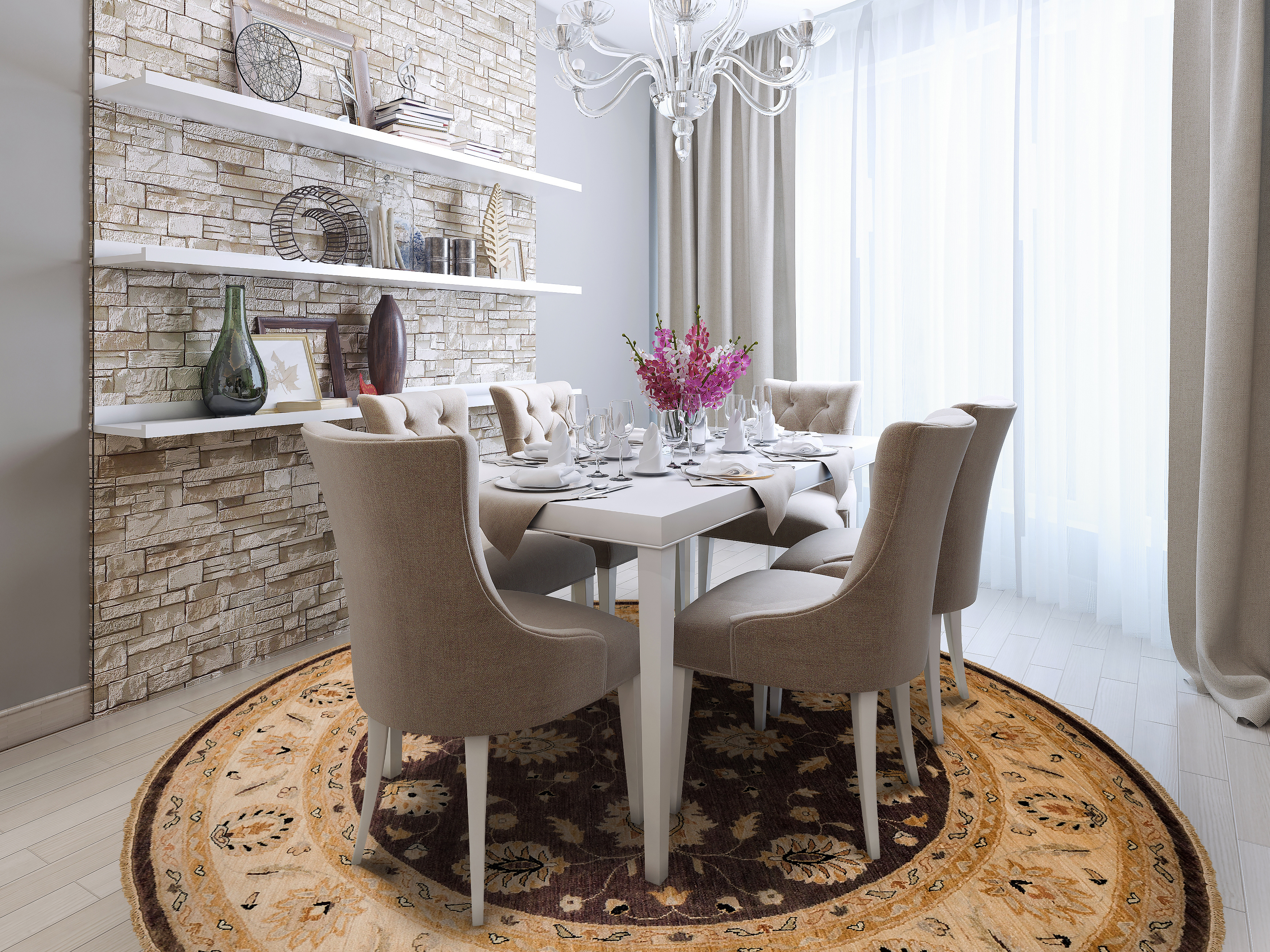 - Unter dem runden Tisch - ein runder oder quadratischer Teppich;