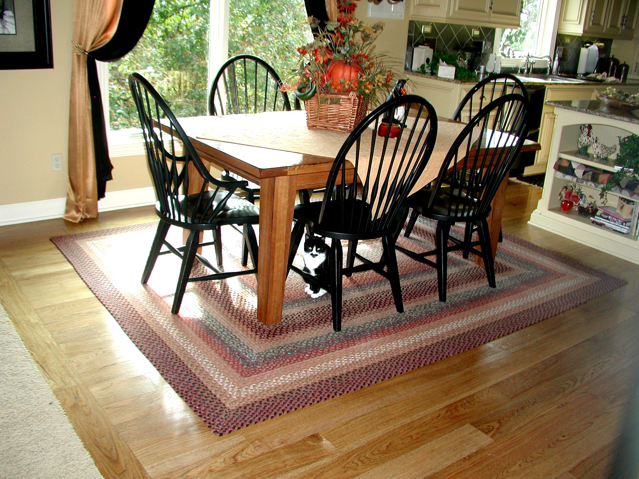- Unter dem rechteckigen Tisch - der Teppich ist gleich oder oval;