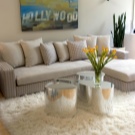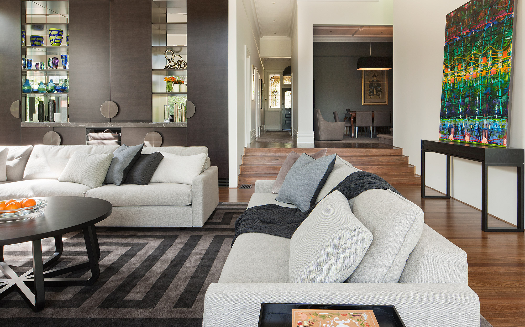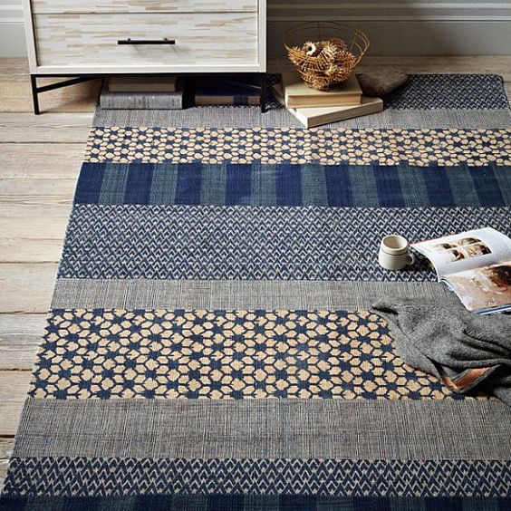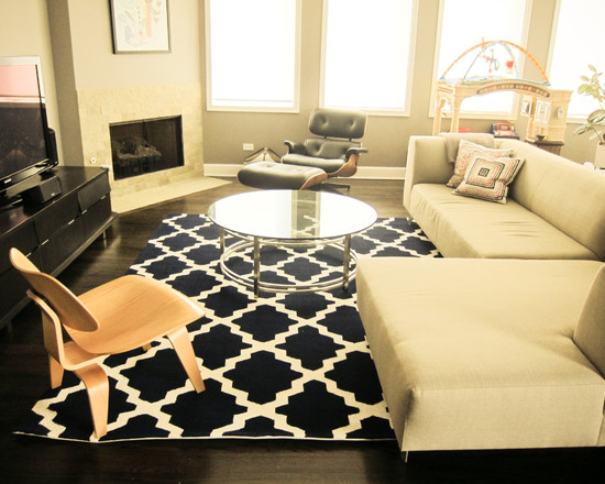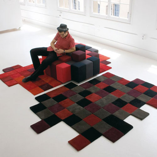 Beachten Sie bei der Auswahl von Teppichböden als Möbelunterlage die goldene Regel: Teppich sollte auf keinen Fall kürzer sein als Möbel in Länge oder Breite. Ansonsten hat es keinen Sinn, es zu kaufen. Es ist modisch, wenn der Teppich unter den Möbeln die gleiche Größe wie das Möbelstück hat und leicht verschoben wird, was eine interessante geometrische Illusion schafft.