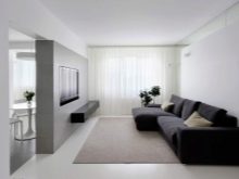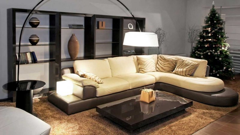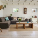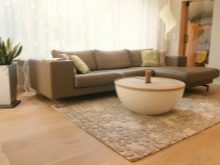 Für kleine Räume mit einem Ecksofa wäre eine gute Lösung, einen Teppich in der Ecke direkt unter den Möbeln zu legen, so dass Sie Ihre Füße darauf setzen können, wenn Sie bequem auf dem Sofa sitzen, aber nicht von Zeit zu Zeit "gehen". In diesem Fall wirken die Möbel als Fixierer für den Teppich, der ihn an Ort und Stelle hält, und der Teppich selbst wird den notwendigen Komfort bei Versammlungen im Wohnzimmer bieten.