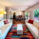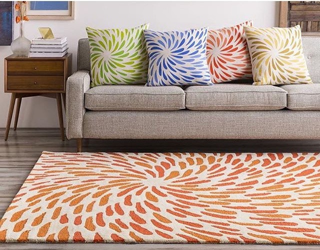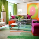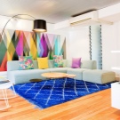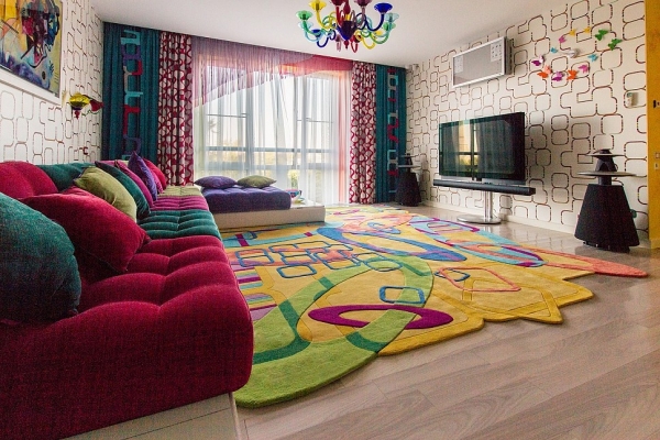 Bei hellen gesättigten Farben ist die Situation etwas komplizierter. Bei der Auswahl eines Akzentteppichs sollten Sie sich an dem Farbrad orientieren und den Farbton eines hellen Elements innerhalb von zwei Sektoren aus der Hauptfarbe auswählen. Zum Beispiel passt ein roter Teppich sowohl in einen rot-lila Raum als auch in gelb-orange.