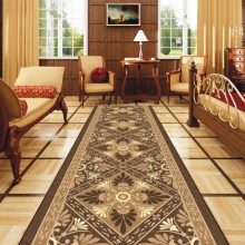 Für eine Halle mit polierten Möbeln empfiehlt es sich, eine lange Probe zu wählen, die unter die Möbel gelegt wird. Es ist schwierig, sich um ihn zu kümmern, aber der Effekt ist es wert.