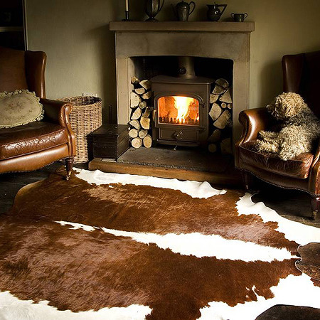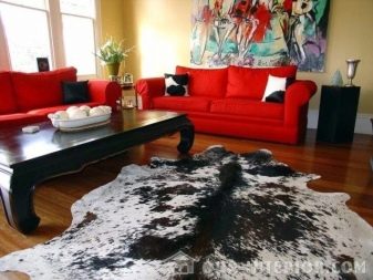 Die Verwendung von Skins ist möglich und in ethnischen InnenräumenIn diesem Fall lohnt es sich jedoch, exotische Muster zu wählen: Zebra: Leopard, Löwe.
