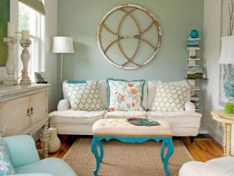 - Als interessant Akzent Sie können nur ein kleines Möbelstück auswählen, Sie können einen kleinen Teppich der gleichen Farbe wählen. Solch ein Akzentduett wird harmonischer als ein einziges helles Detail aussehen.
