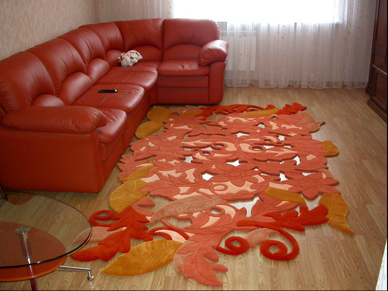 Es gibt keine besonderen Einschränkungen bei der Wahl einer bestimmten Konfiguration: Der Teppich kann entweder rechteckig oder oval, gebrochen, rund, in Form einer Blume oder eines Sterns sein.