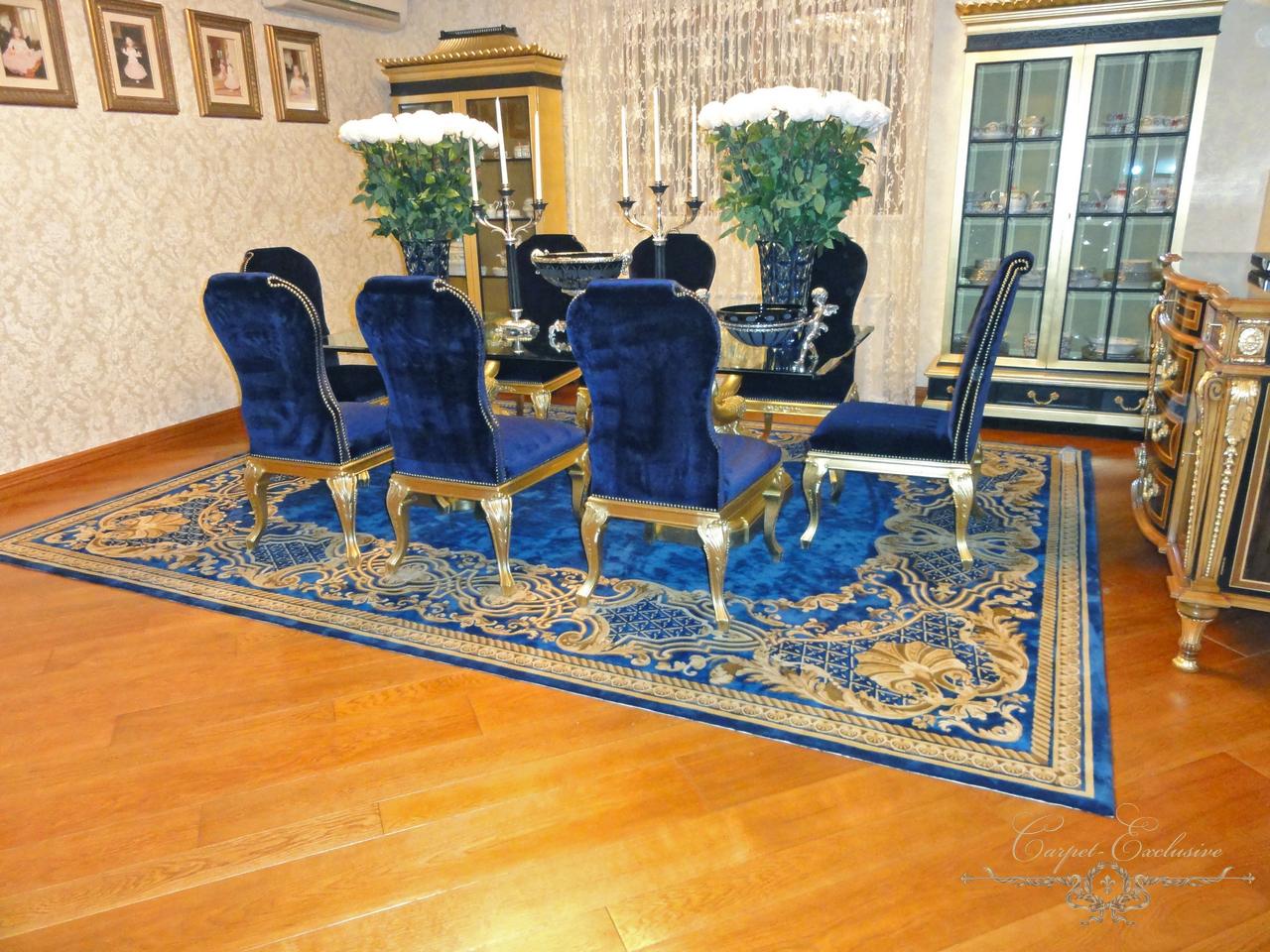 Barocker Teppich muss ein komplexes Muster haben. Typischerweise haben diese Modelle eine klassische rechteckige Form, und an den Rändern sind sie mit Fransen umrahmt. Die Palette ist unterschiedlich - von hell bis dunkel gesättigten Kombinationen.