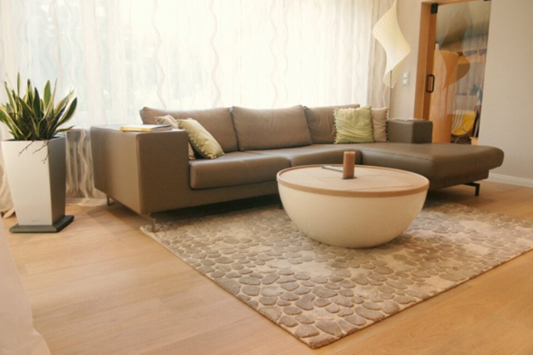 Die Position des Teppichs kann je nach dem gewünschten Effekt sowie der Form der Möbel und des Raums variieren.