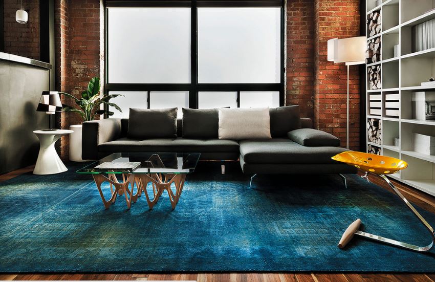 Für die moderne Richtung Loft ein leicht schäbig gemusterter Teppich wird gut funktionieren und sollte so aussehen, als ob Sie von Ihrer Großmutter geerbt hätten. Es ist nicht notwendig, trendige Muster zu wählen, es ist genug, um die Verzierungen zu bevorzugen.