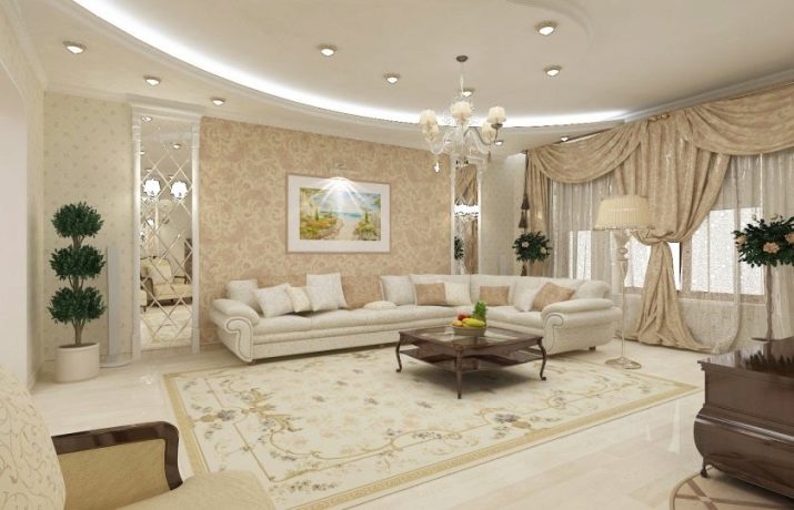 Das Finden von stilvollen Designs in einem bestimmten Wohnzimmer ist nicht so schwierig. Sie müssen sich direkt auf die Situation konzentrieren: Tapeten, Möbel, Fußböden, das Vorhandensein anderer dekorativer Details im Raum.