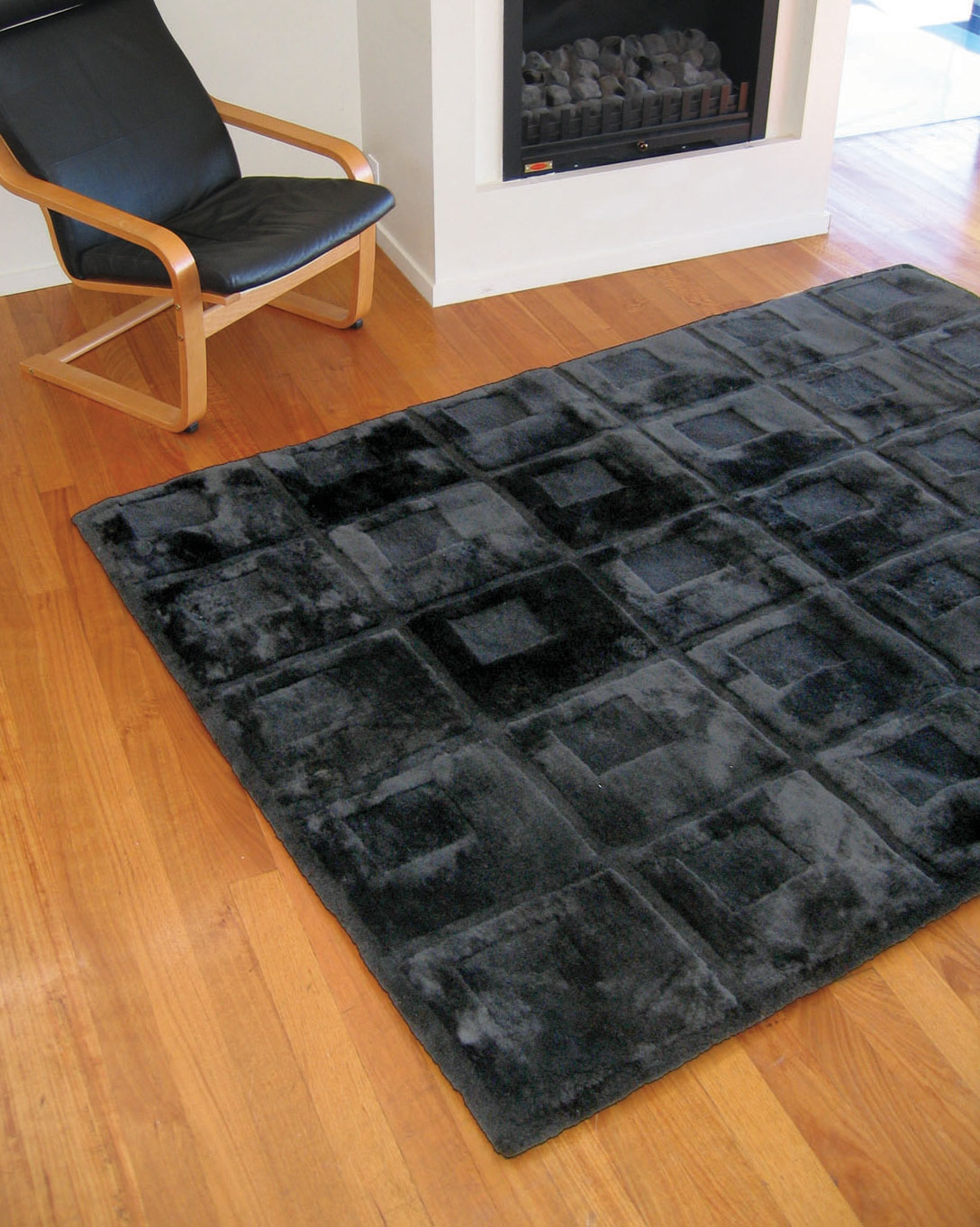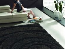 - Schwarz, dunkelblau und grau Monochromatische Modelle von Teppichen sind perfekt für geräumige Apartments im Stil von Minimalismus oder Hi-Tac. Am besten sehen sie natürlich in Schlafzimmern, geräumigen Hallen und Wohnzimmern aus, wenn das Interieur Ihnen erlaubt, diese Farbe zu verwenden.