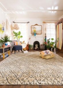 Ein nettes Feature ist auch die Tatsache, dass in den meisten Fällen nicht auf die Dienste von Designern und Dekorateuren zurückgegriffen werden muss. Es ist einfach, einen einfachen Teppich zu wählen, hier muss man nicht über die Kombination verschiedener Muster mit Einrichtungsgegenständen und über viele andere Dinge nachdenken, die manche Kunden begeistern könnten. Die Hauptsache ist, dass die Hauptfarbe des Teppichs das gesamte Interieur ergänzt,und widersprach ihm nicht grundsätzlich.