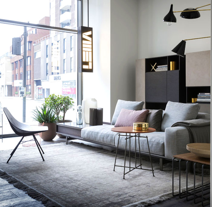 Dunkle Monochrom-Optionen mit einem langen Nickerchen harmonieren perfekt mit den glänzenden Fliesen oder Fliesen auf dem Boden.