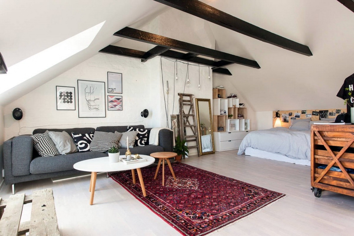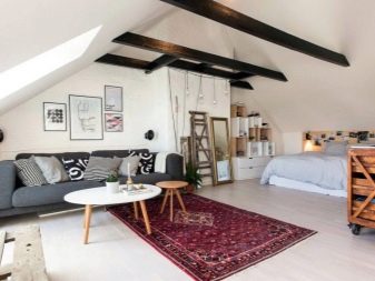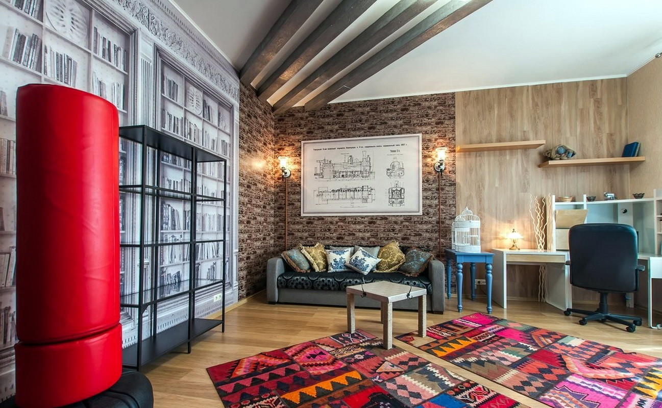 Viele moderne Designer sind nicht auf den klassischen Stil beschränkt. Oft finden sich persische Teppiche in einer so interessanten Richtung wie ein Loft. Aber für die Dekoration des Interieurs werden nicht ganz gewöhnliche Produkte verwendet.Meistens wird die Einrichtung durch einen Teppich aus Patchwork-Technologie ergänzt.