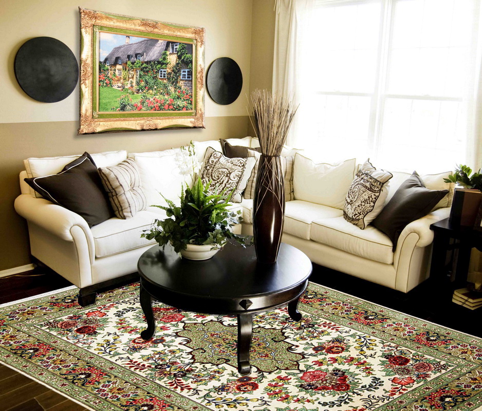 Der Hauptvorteil von Perserteppichen ist, dass es den iranischen Herstellern gelungen ist, alte Traditionen in ihrem Design zu bewahren und Elemente der Moderne einzuführen. Oft werden diese Produkte in klassischen Interieurs verwendet. Das Wohnzimmer in einer dezenten englischen Version kann harmonisch mit einem luxuriösen Perserteppich ergänzt werden. Blumen und Pflanzenelemente, die in dem Ornament vorhanden sind, werden die konservative und raffinierte Fassung vorteilhaft ergänzen.
