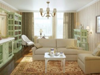 - Wenn das Zimmer dekoriert ist im Stil der "Provence"dann sollten das Farbschema und das Teppichmuster angemessen sein. Ideal für sanfte und sanfte Blau-, Weiß-, Creme-, Grün-, Rosa- und Sandtöne. Muster und Ornamente sollten diskret sein. Es ist gut, wenn sie etwas mit Polsterungen von Polstermöbeln, Vorhängen oder anderen dekorativen Elementen gemeinsam haben. Als Bild wählen Sie Blumen, Beeren, Früchte und ähnliche Pflanzen. Zu ungewöhnliche und helle Teppiche werden in einem solchen Innenraum bunt und unpassend aussehen.