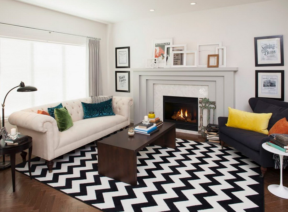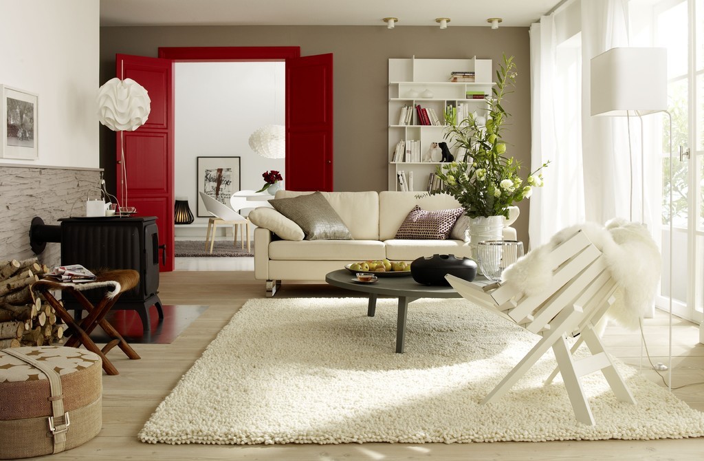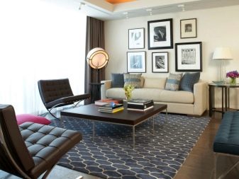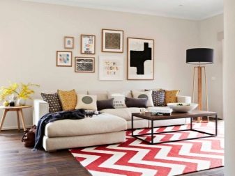 - Sie können auch ordnen Sie Teppich im Wohnzimmer an, in der Zone neben dem Sofa und setzen Sie einen Couchtisch. Es wird warm und gemütlich für Sie und Ihre Gäste sein, in einem solchen Raum zu sein.