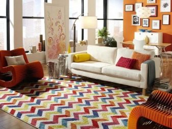 Egal welche Art von Design in Ihrer Wohnung ist, es gibt eine universelle Regel bei der Auswahl einer Teppichfarbe: Helle Farbtöne erweitern optisch den Raum, dunkle machen es optisch kleiner. Es ist auch sehr wichtig, den gesamten Stil zu berücksichtigen, in dem der Raum getrimmt wird.