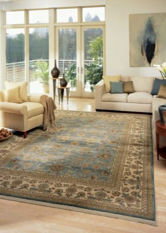 Also, ein Teppich mit einer Größe von 6 Quadratmetern ist ziemlich groß, so dass es nicht für sehr kleine Räume geeignet ist, weil Teppiche insgesamt einen kleinen Raum optisch verdecken. Im Idealfall beträgt der Abstand von den Möbeln oder Wänden zum Teppich mindestens 25 Zentimeter. Aber am besten, wenn solche Teppiche von 2x3 m in geräumigen Räumen platziert werden.