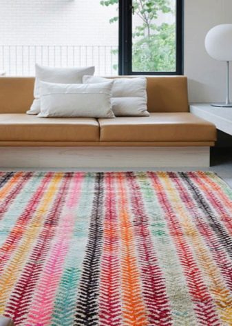 - Wenn Sie sich entscheiden einen solchen Teppich im Schlafzimmer zu legenes ist besser, kein Bett darauf zu legen, denn dann bleibt ein großer Teil der Leinwand unbrauchbar. Die beste Lösung wäre, den Arbeitsbereich mit einer weichen Beschichtung auf dem Boden zu isolieren.
