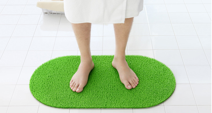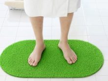 Solche Teppiche werden in Badezimmern verwendet, da sie aus Materialien bestehen, die keine Angst vor Feuchtigkeit haben und sich angenehm anfühlen. Gewöhnlich ist ihr Stapel empfindlicher als der der Türversionen und ist in helleren Farben gemalt.