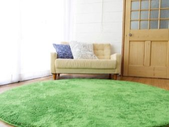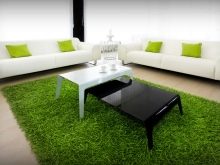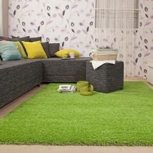 Natürlich ist der Favorit unter den Teppichen mit einem Haufen Kunstrasen grün. Es imitiert die natürliche Abdeckung und steht der Entspannung und Ruhe oft nicht nach. Jedoch (im Gegensatz zu diesem Kraut) wird eine solche Beschichtung nicht schmutzig, sie enthält keine Insekten, die einen Menschen beißen und alle Arten von Unbehagen hervorrufen können.