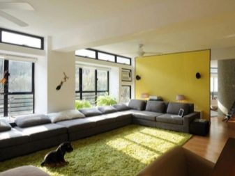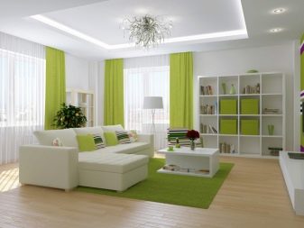 Sehr beliebte Option "Zimmer Rasen", wenn der Teppich in der Mitte des Raumes, von anderen Möbeln umgeben ist. Dann wird es eine Spielfläche oder repräsentiert einfach einen hellen Akzent des gesamten Innenraums.