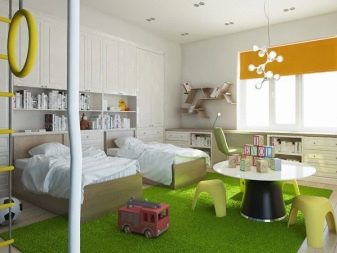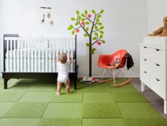 Die Verwendung von "Rasen" - eine beliebte Option für den Kindergarten. An erster Stelle - aufgrund der zahlreichen positiven Eigenschaften solcher Produkte. Zweitens ist die Liebe zu ihnen wegen der Funktionalität und Leichtigkeit der Reinigung von Teppichen. Drittens sehen solche Modelle sehr gemütlich aus und ähneln einem lebenden Märchen.