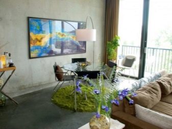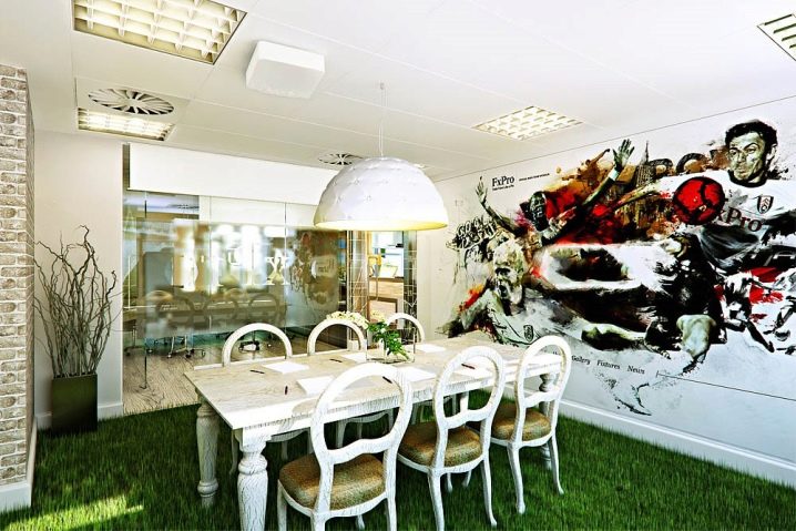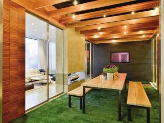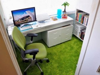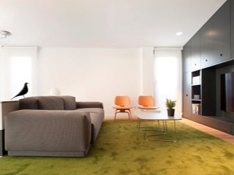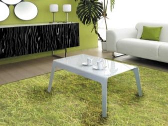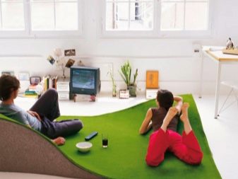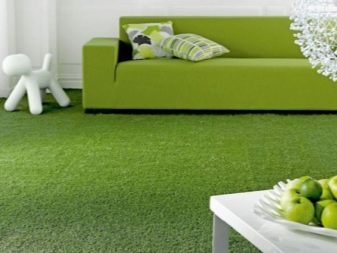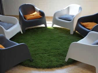 Darüber hinaus wird Teppich in Form von Kunstrasen verwendet, um lokale Akzente zu schmücken und zu schaffen.Sie können dieses Material mit einzelnen Möbeln dekorieren oder anderweitig verwenden.