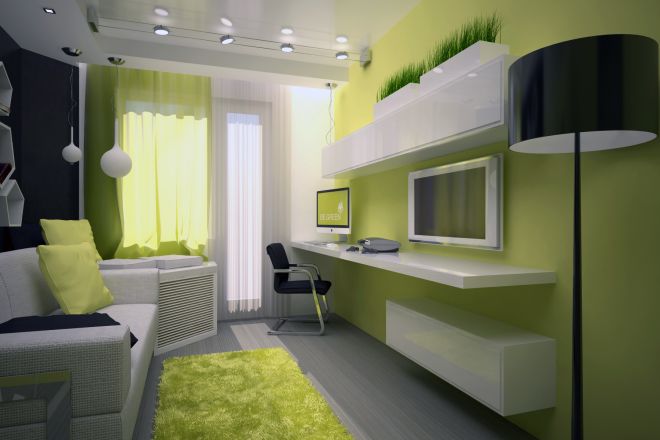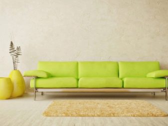 Diese Farbe kann verschiedene Farbtöne haben: hellgrün, sauer, lime, grün-gelb. Natürlich sieht es aus wie ein Teppich mit beigen Sprenkeln, der im Sommer an leicht getrocknetes Gras erinnert.