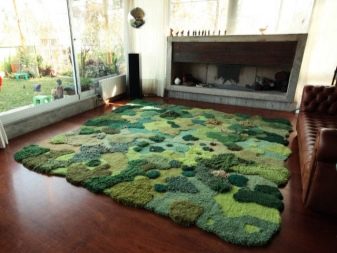Die Verwendung von Polyethylenmaterialien, die Gras imitieren, ist heutzutage sehr populär. Solche Teppiche schmücken eine Vielzahl von Räumen.