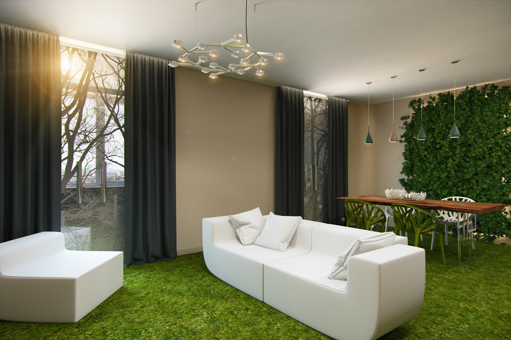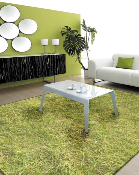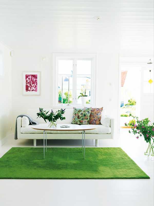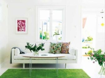 Teppich Gras ist ideal für den Innenbereich. Es erinnert an den Sommer, füllt die Bewohner des Hauses mit Energie, lindert Stress und Töne.