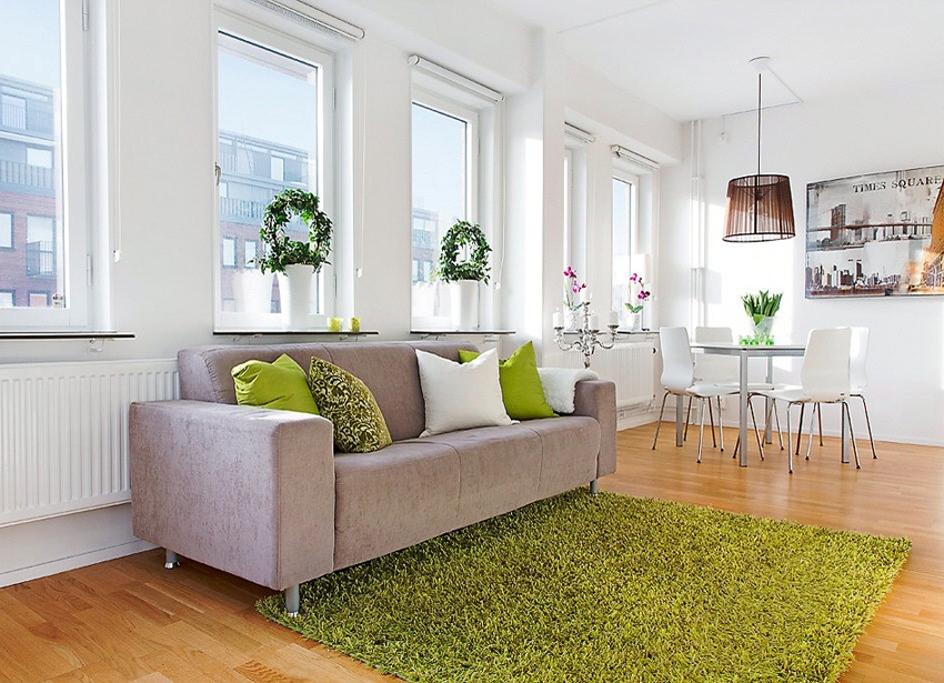 Wahrscheinlich ist diese Art von Teppich in den Wohnzimmern am häufigsten zu finden. Dies ist eine wirklich großartige Design-Option für Stadtwohnungen.