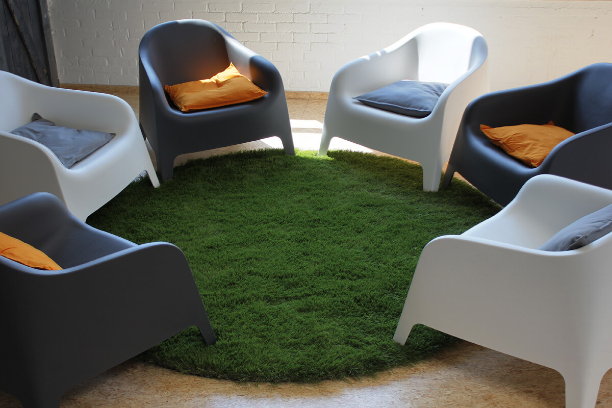 Produkte anderer Farben, die sich von Grün unterscheiden, verursachen keine direkten Assoziationen mit Rasen und Gras, so dass sie in einer Vielzahl von Innenräumen verwendet werden können.