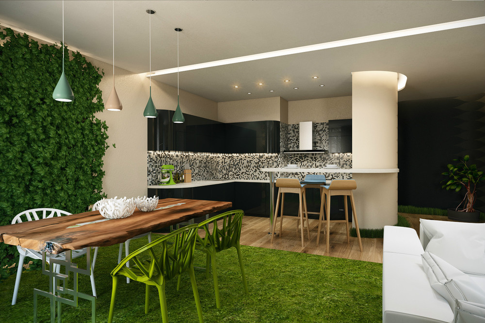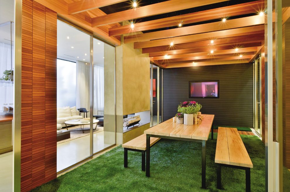 Jeder weiß, dass auf den Golfplätzen und im Fußball oft unwirkliche Grasbedeckung verwendet wird. Bisher entscheiden sich jedoch nur die "fortgeschrittensten" Designer für die Verwendung dieser Abdeckung zu Hause.