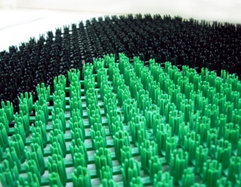 Solche Produkte bestehen aus künstlichen Grashalmen, die in einer Plastikumrandung implantiert sind. Während die Zotten in Länge und Dichte sowie in Farbe voneinander abweichen können.
