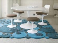 Für die Küche oder den Essbereich eines Studio-Apartments sind solche Optionen irrelevant: Es sieht auf dem Bild schön aus, aber es ist völlig unpraktisch. Die Wahl einer solchen Zone verkürzt die Lebensdauer um mehr als das Doppelte und der Florteppich in der Küche wird nicht schön aussehen.