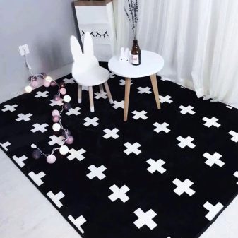 - Für ein Babyzimmer, das die ersten Schritte meistert, können Sie ein Modell mit einem großen Stapel nehmen, das das Kind vor einem versehentlichen Fall schützt, oder einen kleinen kombinierten Teppich mit einem geteilten Flor und niedrigen Schlaufen;