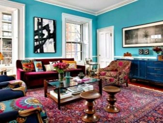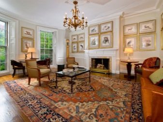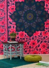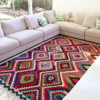 Solche Teppiche sind normalerweise durch das Vorhandensein einer großen Anzahl von hellen Farben gekennzeichnet, so dass Accessoires mit zusätzlichen Farblösungen inakzeptabel sind.