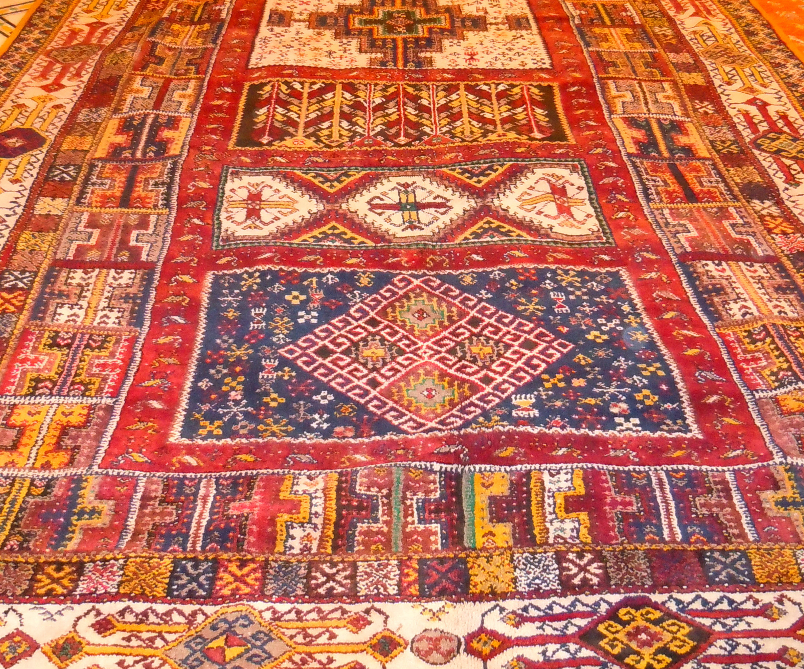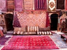 Berberteppiche anders genannt Rabat. Der Name kommt von der Stadt, die die Hauptstadt von Marokko ist, weil Rabat der Geburtsort solcher Produkte ist. Berberteppich sieht eher wie ein Teppich aus. Diese sind sehr funktionelle und nicht breite Produkte, die ein sehr geringes Gewicht haben. Sie sind leicht zu pflegen und zu reinigen. Solche Produkte sind sehr hell, denn wenn sie erstellt werden, verwenden sie sehr reich an Farbfäden - Orange, Gelb, Rot.