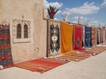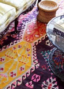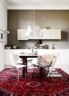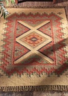 Auch sehr elegant wird gedacht Dagestan, Buchara und Berber Kelim. Die letztere Option unterscheidet sich dadurch, dass sie bestimmte Muster enthält, die in einer strikten Reihenfolge angeordnet sind. Alle Zeichnungen befinden sich also in der Mitte und entlang des Umfangs und sind mit gesättigten roten Fäden versehen.
