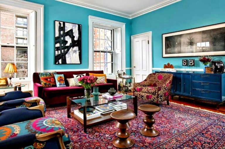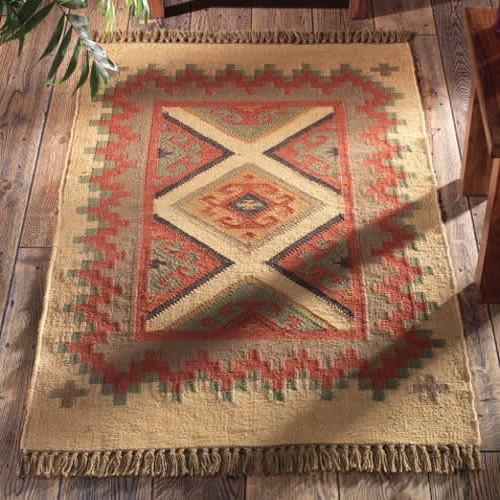Meistens wird Kelim auf den Boden gelegt. Darüber hinaus sollte seine Größe von der Menge der Möbel im Raum abhängen. Wenn Sie viel Platz auf dem Boden haben, wo es keine Möbel gibt, dann können Sie den Kelim unter der freien Fläche wählen.