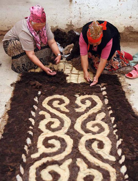 - Gefilzt Solche Produkte werden normalerweise in jedem östlichen Land für ihren eigenen Gebrauch hergestellt, fast kein Land produziert sie für den Export. Dies ist der älteste traditionelle Teppich, der aus Filz besteht.Dies ist ein sehr elegantes Design und langlebige Produkte, die ausschließlich mit ihren eigenen Händen erstellen.