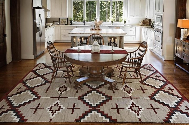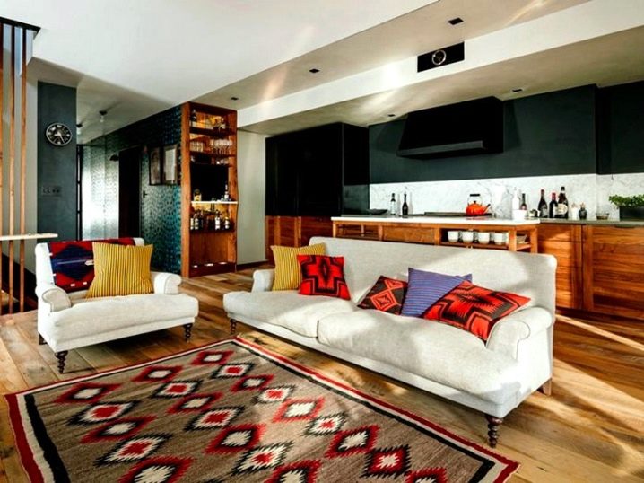Die richtige Lage des Teppichs ist sehr wichtig, denn mit seiner Hilfe können Sie den Innenraum optisch großzügiger und komfortabler gestalten.In kleinen Räumen ist es besser, einen kleinen Kelim zu legen. So können Sie den Raum optisch erweitern. Für große Wohnzimmer und andere Räume, ist es besser, nur ziemlich breite volumetrische Produkte zu wählen, sie werden diesem Raum Luxus und Geräumigkeit geben.