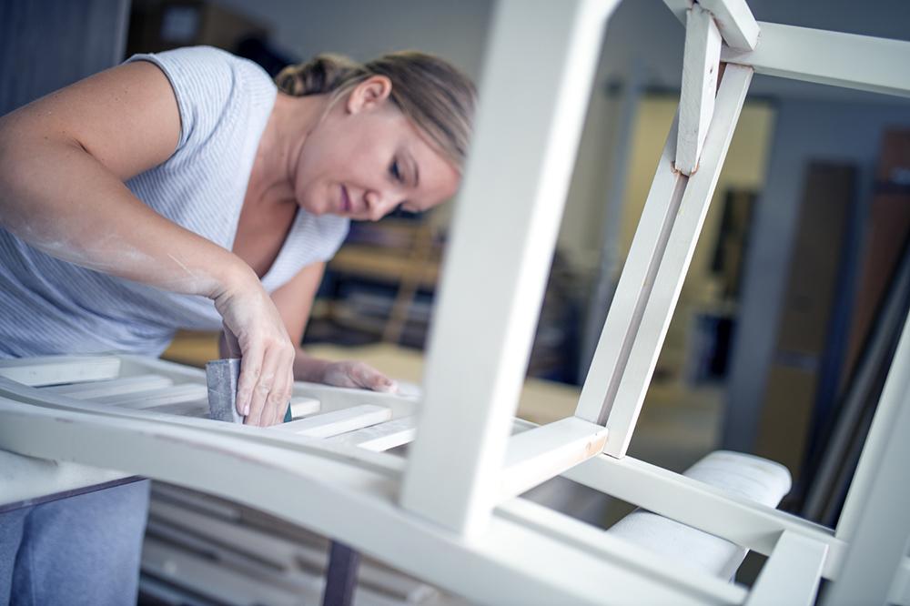 Die nächste Stufe ist die Entfernung von Fetten und Altlack von den zu behandelnden Oberflächen mit feinkörnigem Sandpapier.