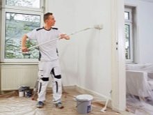 Die Lackierung während der Reparatur berührt nicht nur, wenn sie Gipskartonplatten oder ähnliches Material verkleiden. Das Dekorieren einer unvorbereiteten Oberfläche mit Tapeten oder Keramikfliesen schlägt fehl. Das Material wird sich schnell mit der Farbe von den Betonwänden entfernen.Dies führt zu einer Änderung aller Reparaturen und zu einem Mehraufwand an Zeit und Geld.